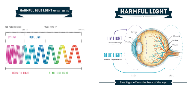 Blue Light has a very short wavelength so produces a higher amount of energy. Studies suggest that, over the time, exposure to blue Light could cause serious long-term damage to eyes.