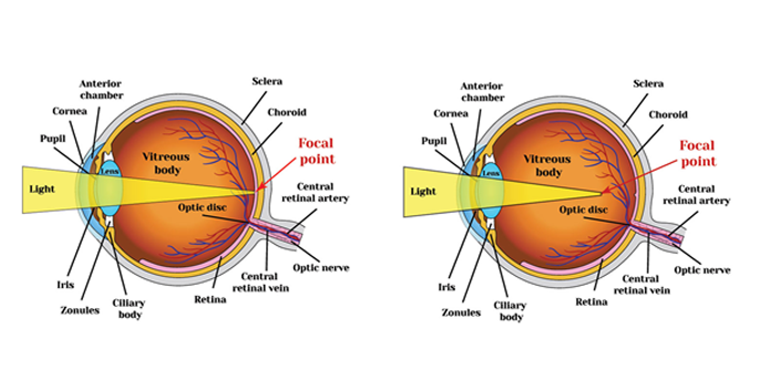 Myopia or nearsightedness is a progressive visual disorder where objects close to you appear clearer than the ones that are distant. The problem in seeing objects at a distance is because in myopia the eye ball is too long, and the image falls in front of retina instead falling directly on retina.